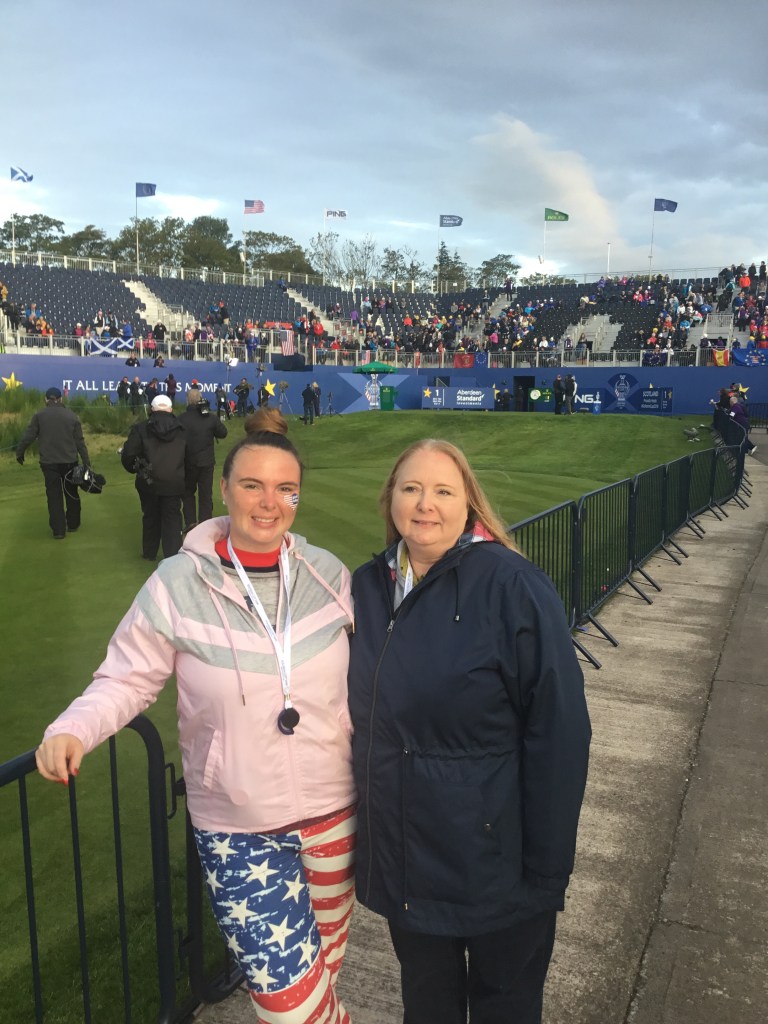 Aly and I have done about 20 Father/Daughter trips to LPGA Tournaments, including two Solheim Cups, 2017 Des Moines CC in Iowa and 2019 at Glen Eagles in Auchterarder, Scotland. (we took mom on that trip). Up until COVID, we played 9-hole almost every Friday. It’s wonderful to have a low handicaper as your scramble partner! It will be a while before I recoup the cost of all her lessons, but Aly is repaying like clockwork–One Skin at a Time. 😉